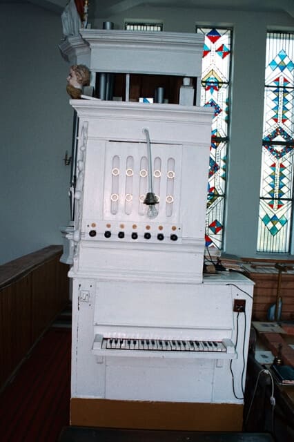 | Pryncypał 4’ (w prospekcie, cynkowy, wtórny) Oktawa 2’ Flet 4’ Oktawa 1’ Mixtura 1 1/3’ (2 ch., repetycja na c1) Kwinta 2 2/3’ Flet kryty 8’ |