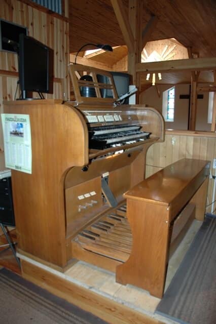 Stół gry wolnostojący, po lewej stronie szafy, bokiem do ołtarza głównego. 14 głosów podzielonych pomiędzy dwa manuały (5+6) o zakresie C-g3 i pedał (3) o zakresie C-f1.