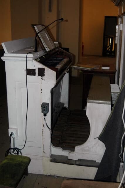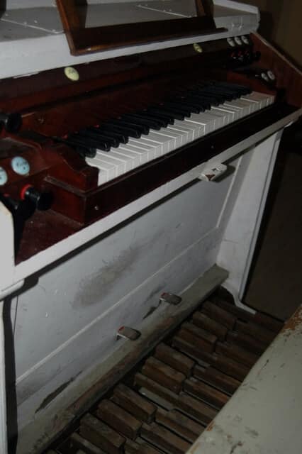 Stół gry wolnostojący, na osi prospektu, przodem do ołtarza głównego. 10 głosów podzielonych pomiędzy jeden manuał (7) o zakresie C-f3 i pedał (3) o zakresie C-c1.
