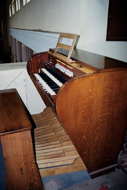 Stół gry wolnostojący, po lewej stronie prospektu, bokiem do ołtarza głównego. 15 głosów podzielonych pomiędzy dwa manuały (I-5, II-6) o zakresie C-a3 i pedał (4) o zakresie C-f1.