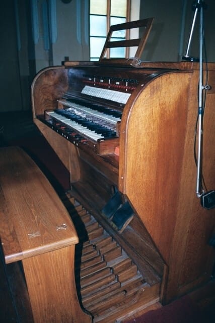 | Manuał I Burdon 16’ Pryncypał 8’ Biflet 8’ Klarnet 8’ Viola 8’ Oktawa 4’ Flet Harm. 4’ Mixtura 4 ch. | Manuał II Pryncypał skrzypcowy 8’ Flet Amab. 8’ Aeolina 8’ Kwinta 1 1/3’* Rożek 4’ Flet leśny 2’ *przed 1981 r. był to głos Vox Celestis | Pedał Pryncypał 16’ Subbas 16’ Oktawbas 8’ Cello 8’ |