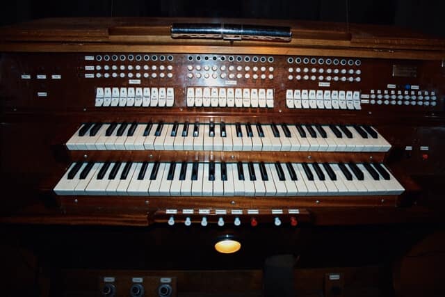 Urządzenia pomocnicze: Piano, Forte, Tutti, 2 Wolne Kombinacje, Crescendo, Połączenia: II/I, II/P, II/P, Super I/P, Sub II/I, Super II/I, Tremolo II.