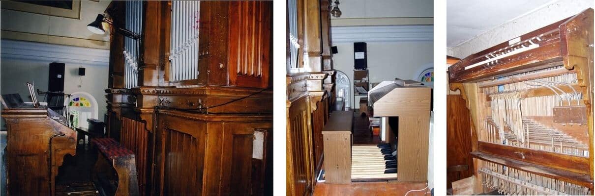 Stół gry obecnie wymontowany. Niegdyś wolnostojący, na osi prospektu, przodem do ołtarza głównego. 8 głosów podzielonych pomiędzy jeden manuał (6) o zakresie C-f3 i pedał (2) o zakresie C-c1.