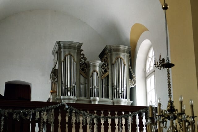 | Manuał Pryncypał 4’ (prospekt) Flet 4’ Flet 8’ Bourdon 8’ Fugara 8’ Mikstura | Pedał Subbas 16’ (włączony na stałe) (brak napisów) |