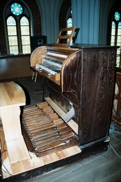 Stół gry wolnostojący, na osi prospektu, przodem do ołtarza głównego. 31 brzmiących głosów podzielonych pomiędzy dwa manuały (I-11, II-14) o zakresie C-a3 i pedał (6) o zakresie C-f1 plus dwa głosy transmitowane w II man.