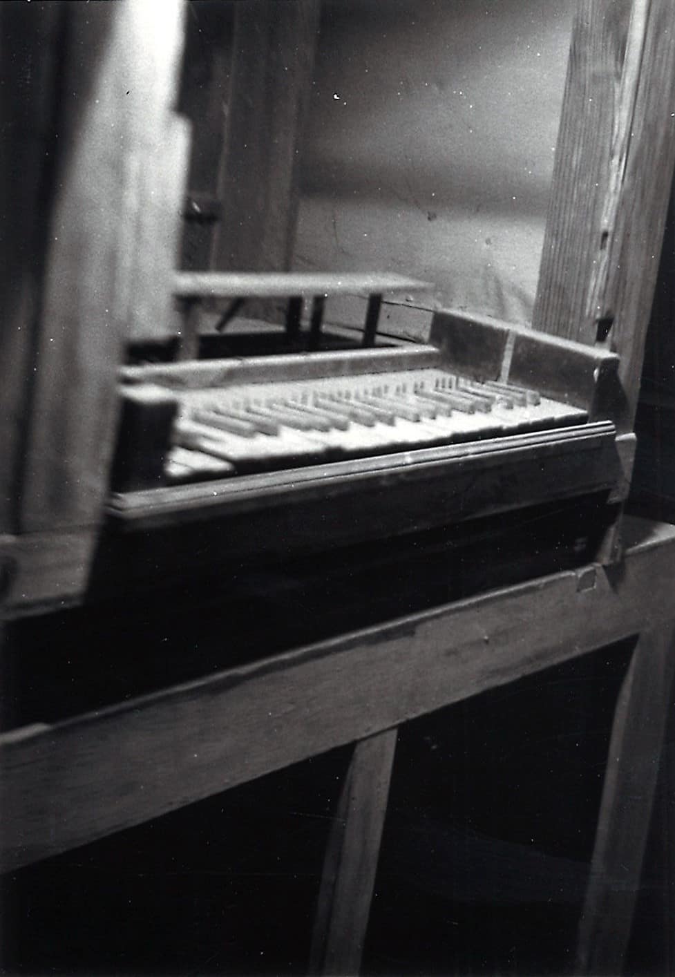Klawiatura o zakresie CDEFGABH-c3 wbudowana w tył szafy organowej.