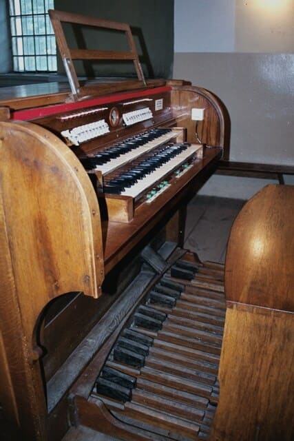 Stół gry wolnostojący, na osi prospektu, przodem do ołtarza głównego. 16 głosów podzielonych pomiędzy dwa manuały (7, 6) o zakresie C-a3 i pedał (3) o zakresie C-f1.