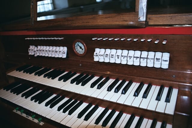 Urządzenia pomocnicze: Piano, Forte, Tutti, AP, Crescendo, WK; Połączenia: II/I, I/P, II/P, Super I, Super II/I, Subo II/I, Super II; Tremolo II.