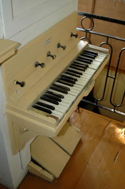 Stół gry wbudowany w prawy bok szafy organowej, bokiem do ołtarza głównego. 4 głosy, jeden manuał o zakresie C-c3.