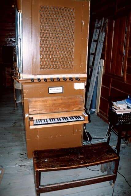 Stół gry wbudowany w prawy bok szafy organowej. Pozytyw o 7 głosach Manuał o zakresie CFDGEABHc-c3.