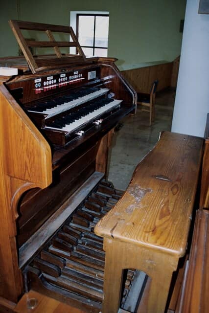 Stół gry wolnostojący, na osi prospektu, przodem do ołtarza głównego. 10 głosów podzielonych pomiędzy dwa manuały (4+4) o zakresie C-f3 i pedał (2) o zakresie C-d1.